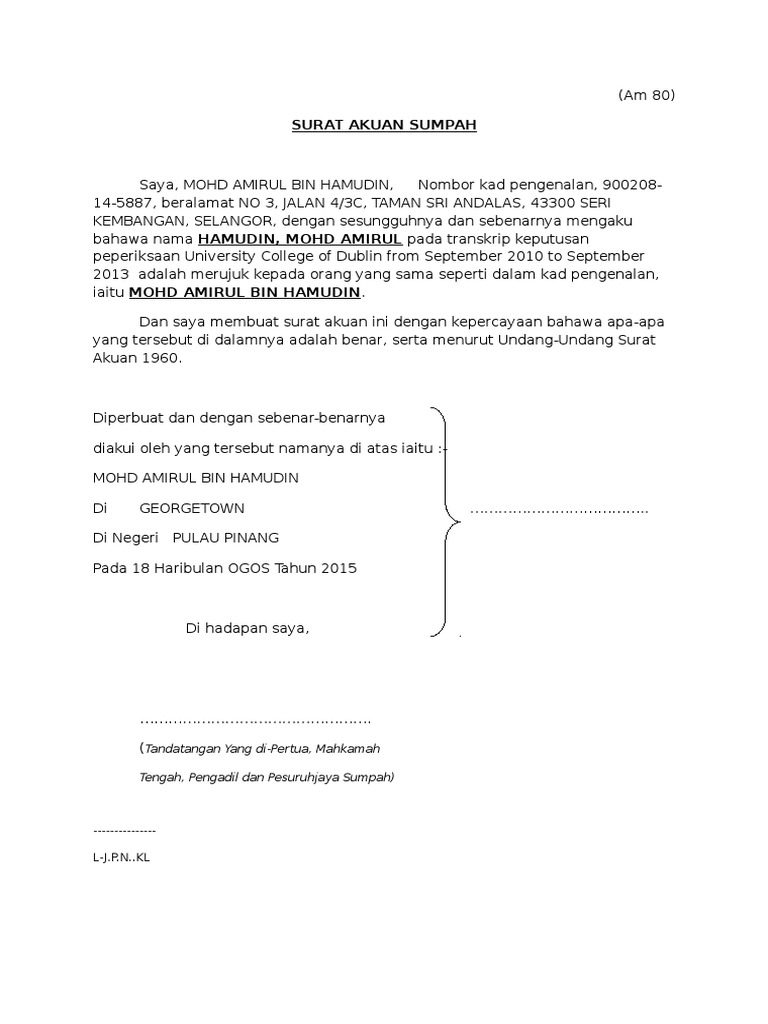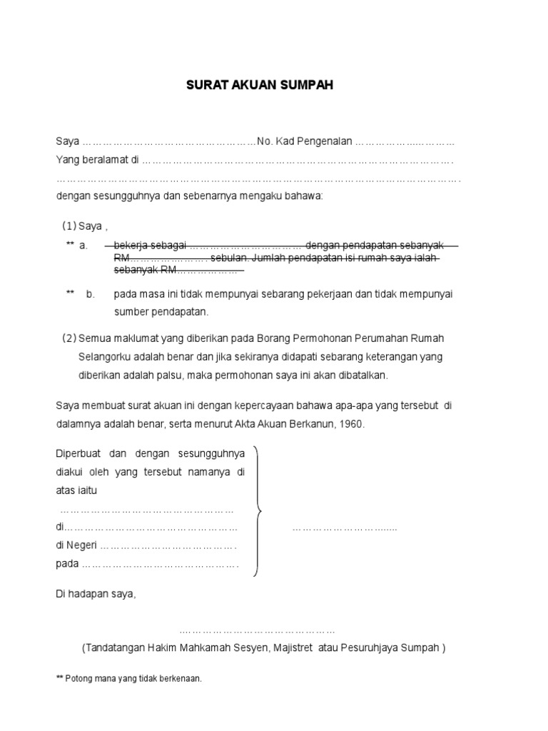 Surat Akuan Sumpah In English Lihat Letter Website